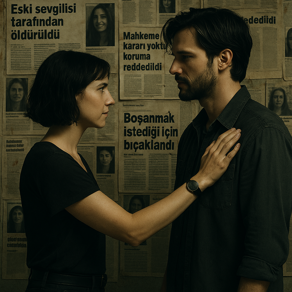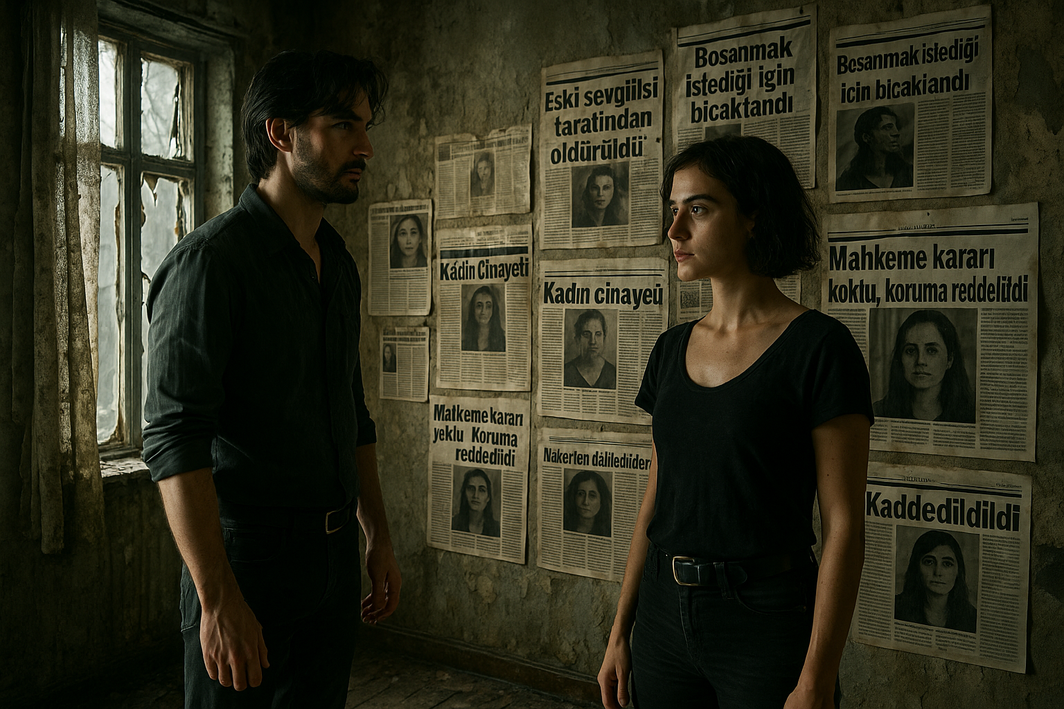 Duvarlar tamamen gazete küpürleriyle kaplıydı. Her biri bir kadın cinayeti haberiydi.